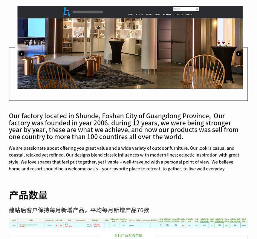 谷歌優化推廣哪家好?推薦深圳市思億歐服務中心專業的谷歌優化推廣公司,我們的Google網站推廣家具案例客戶公司位于廣東省佛山市順德市世界家具中心,我們的公司成立于2006,在過去的12年里,公司一年比一年強大,現在我們的產品從最開始的一個國家銷往世界各地的100多個國家。目前已與外貿快車合作近2年時間,在合作期間客戶很重視網站的運營和維護,每個月新增產品及關鍵詞在70多個以上。目前關鍵詞排名在谷歌首頁的數量為459個,日均IP達到238個,并且呈穩步上升的趨勢,單月詢盤已突破100封(不包含直接發送郵件到郵箱的詢盤)。