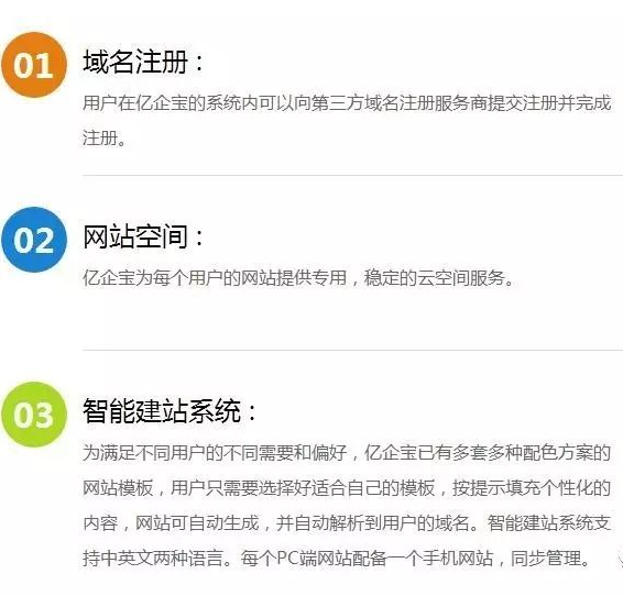 億企寶為滿足不同用戶的不同需要和偏好,已有多套多種配色方案的網(wǎng)站模板,用戶只需要選擇好適合自己的模板,按提示填充個性化的內(nèi)容,網(wǎng)站可自動生成,并自動解析到用戶的域名。智能建站系統(tǒng)支持中英文兩種語言。每個PC端網(wǎng)站配備一個手機網(wǎng)站,同步管理。