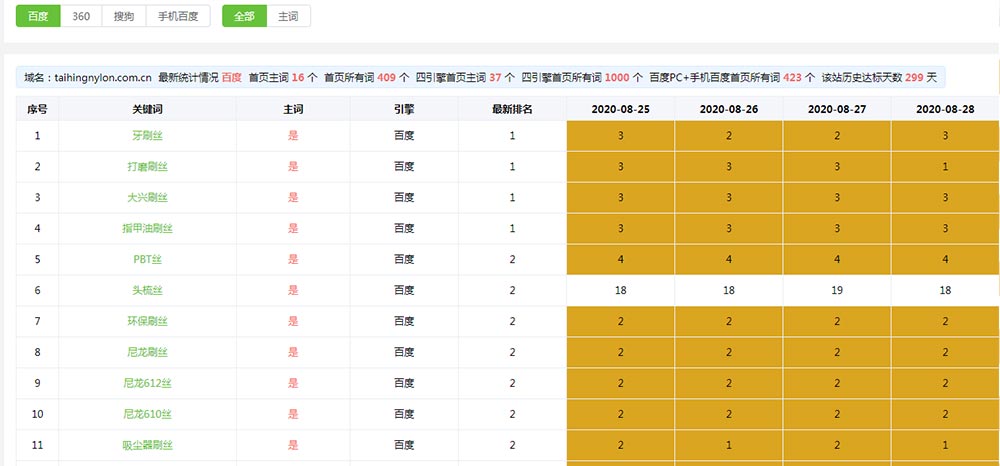 • 主關(guān)鍵詞排名